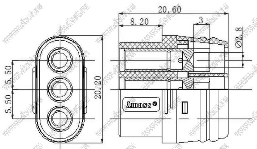 розетка на провод с кожухом; 3-конт.