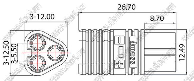 Материал изолятора: полиэстр (UL94V-0), PA9T/LCP