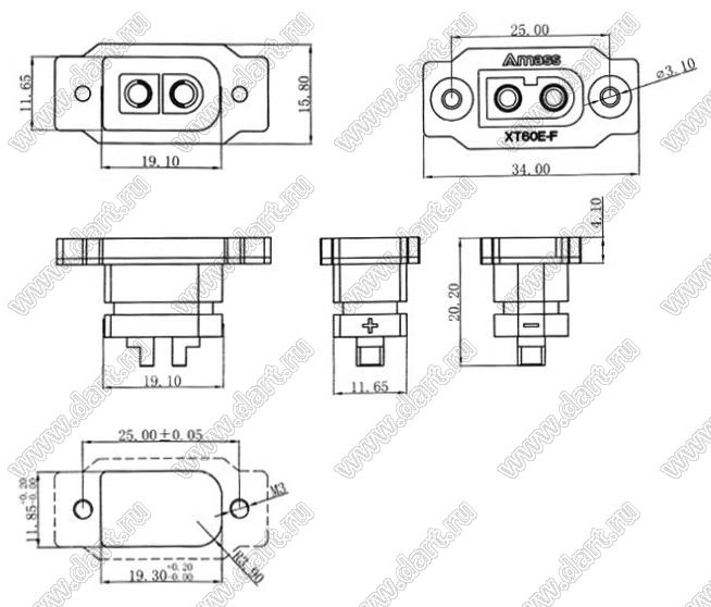 розетка с фланцем на панель; 2-конт.