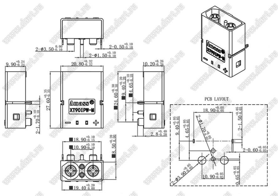 Материал изолятора: полиэстр (UL94V-0), PA9T/LCP