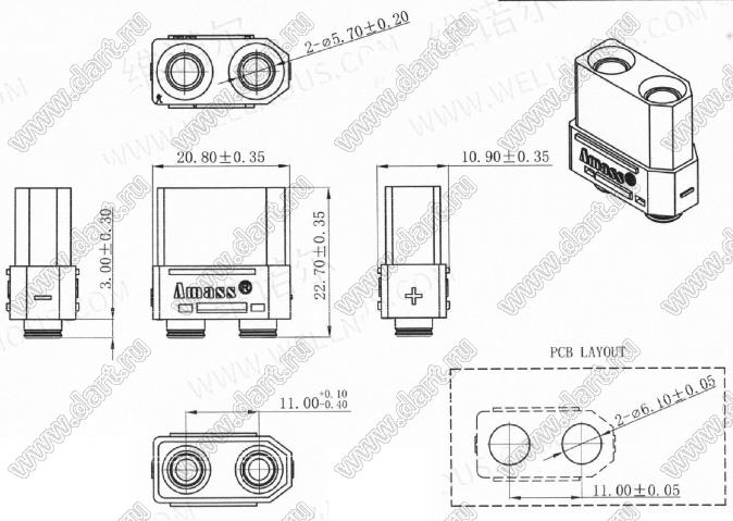 Материал изолятора: полиэстр (UL94V-0), PA9T/LCP