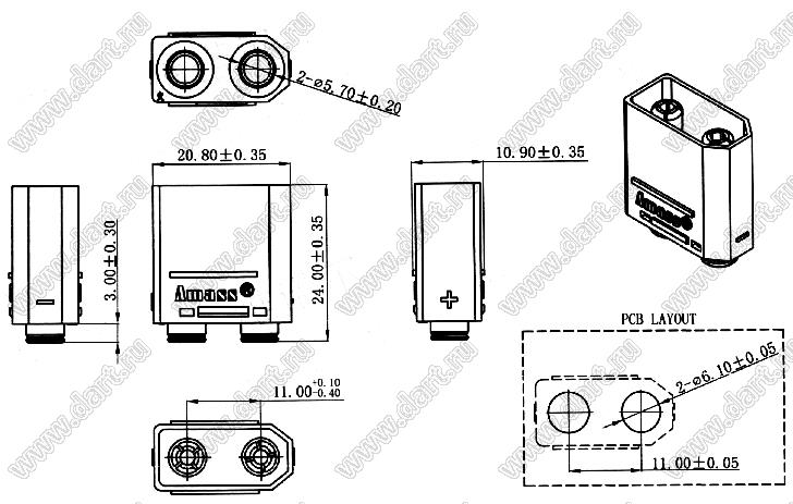 Материал изолятора: полиэстр (UL94V-0), PA9T/LCP