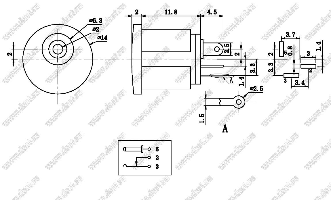 Каталог > Электронные компоненты, радиодетали > Разъёмы (соединители, переходники) > Разъемы вторичного (низковольтного) DC питания > DC гнезда (вторичного низковольтного питания) > DC-022-2.0 (DJK-03A)