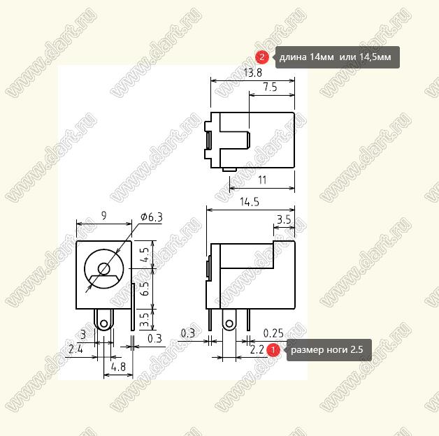Каталог > Электронные компоненты, радиодетали > Разъёмы (соединители, переходники) > Разъемы вторичного (низковольтного) DC питания > DC гнезда (вторичного низковольтного питания) > DJK-02A-2.5