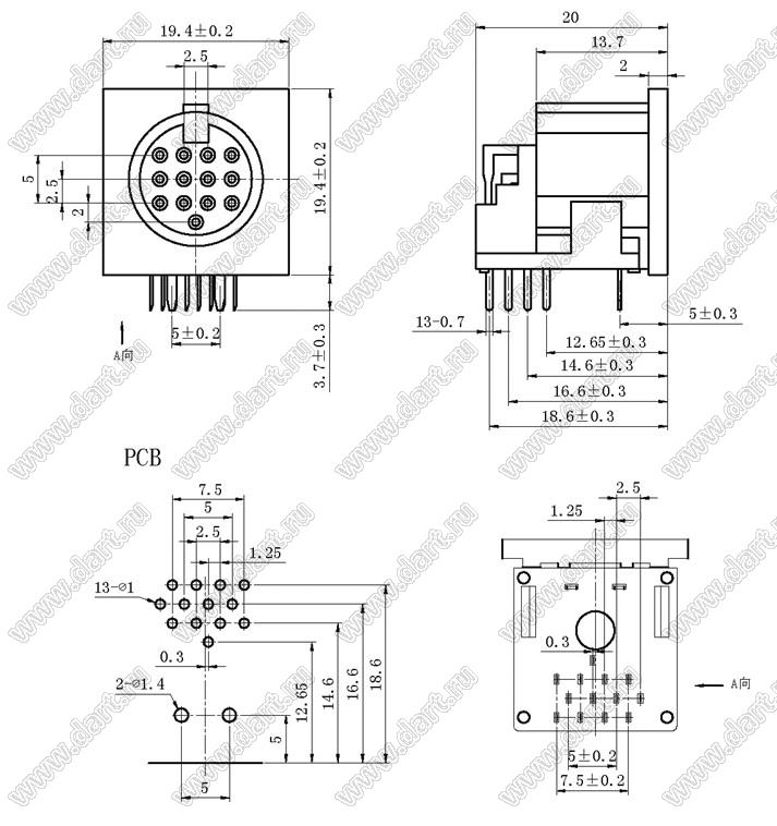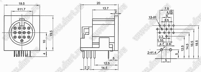 Каталог > Электронные компоненты, радиодетали > Разъёмы (соединители, переходники) > Разъемы DIN круглые > Розетки DIN на плату > DS-13-04A
