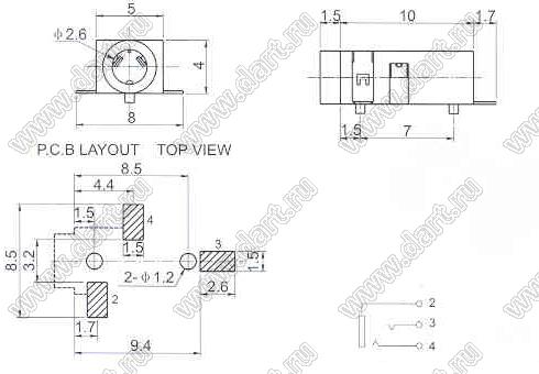 Каталог > Электронные компоненты, радиодетали > Разъёмы (соединители, переходники) > Разъемы аудио-видео > Аудио разъемы 2,5 мм > PJ-208