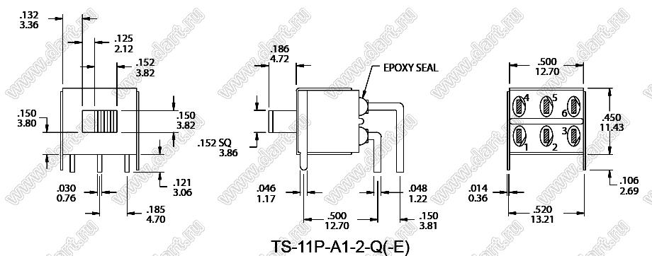 Каталог > Электронные компоненты, радиодетали > Переключатели, кнопки > Переключатели движковые (SLIDE) > Переключатели движковые (SLIDE) угловые > TS-11P-A1-2-Q-H