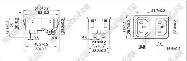 Каталог > Электронные компоненты, радиодетали > Разъёмы (соединители, переходники) > Разъемы AC (разъемы сетевого питания) > Трехполюсные разъемы сетевого питания > IEC 60320 C13/C14 > SP-861D1