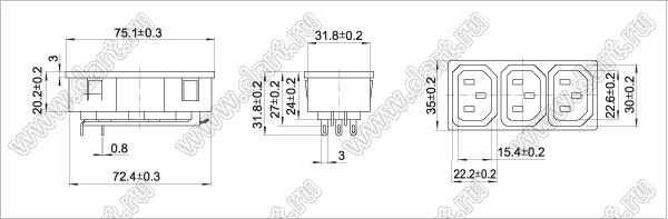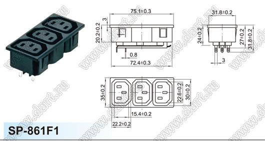 Каталог > Электронные компоненты, радиодетали > Разъёмы (соединители, переходники) > Разъемы AC (разъемы сетевого питания) > Трехполюсные разъемы сетевого питания > IEC 60320 C13/C14 > SP-861F1-1.5