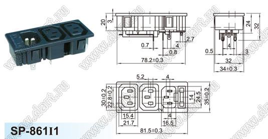 Каталог > Электронные компоненты, радиодетали > Разъёмы (соединители, переходники) > Разъемы AC (разъемы сетевого питания) > Трехполюсные разъемы сетевого питания > IEC 60320 C13/C14 > SP-861I1-1.5