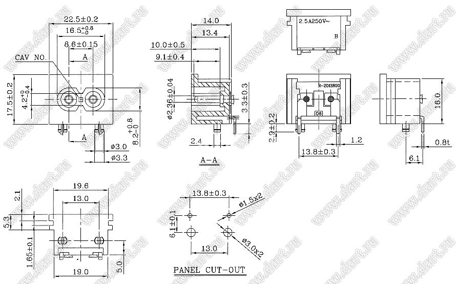 Каталог > Электронные компоненты, радиодетали > Разъёмы (соединители, переходники) > Разъемы AC (разъемы сетевого питания) > Двухполюсные разъемы сетевого питания > IEC 60320 C7/C8 > R-201SN90(B06)
