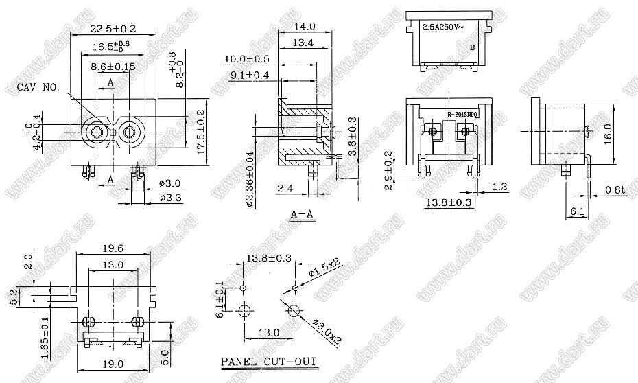 Каталог > Электронные компоненты, радиодетали > Разъёмы (соединители, переходники) > Разъемы AC (разъемы сетевого питания) > Двухполюсные разъемы сетевого питания > IEC 60320 C7/C8 > R-201SN90(B04)