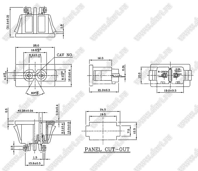 Каталог > Электронные компоненты, радиодетали > Разъёмы (соединители, переходники) > Разъемы AC (разъемы сетевого питания) > Двухполюсные разъемы сетевого питания > IEC 60320 C7/C8 > R-201SN(B01)