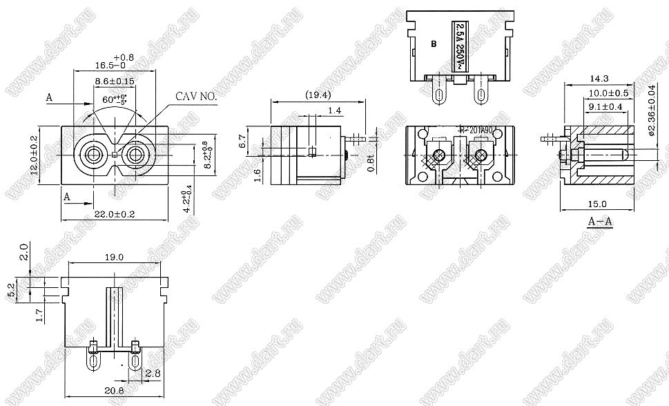 Каталог > Электронные компоненты, радиодетали > Разъёмы (соединители, переходники) > Разъемы AC (разъемы сетевого питания) > Двухполюсные разъемы сетевого питания > IEC 60320 C7/C8 > R-201A90(B06)