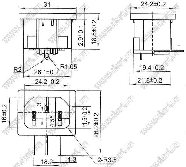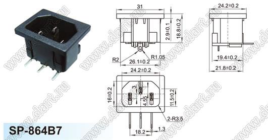 Каталог > Электронные компоненты, радиодетали > Разъёмы (соединители, переходники) > Разъемы AC (разъемы сетевого питания) > Трехполюсные разъемы сетевого питания > IEC 60320 C13/C14 > SP-864B7