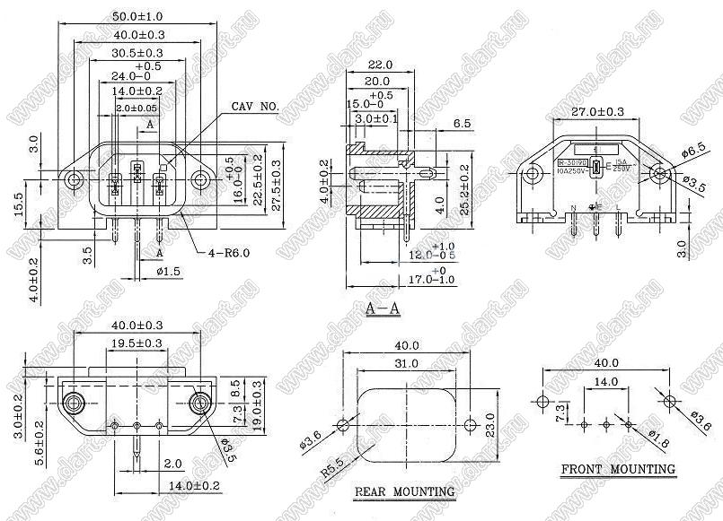 Каталог > Электронные компоненты, радиодетали > Разъёмы (соединители, переходники) > Разъемы AC (разъемы сетевого питания) > Трехполюсные разъемы сетевого питания > IEC 60320 C13/C14 > R-30190(B00)