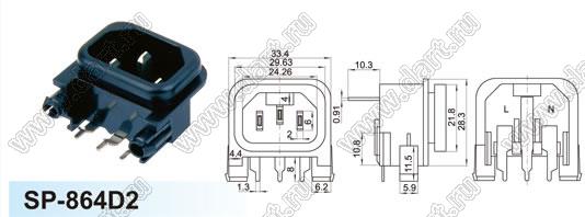 Каталог > Электронные компоненты, радиодетали > Разъёмы (соединители, переходники) > Разъемы AC (разъемы сетевого питания) > Трехполюсные разъемы сетевого питания > IEC 60320 C13/C14 > SP-864D2