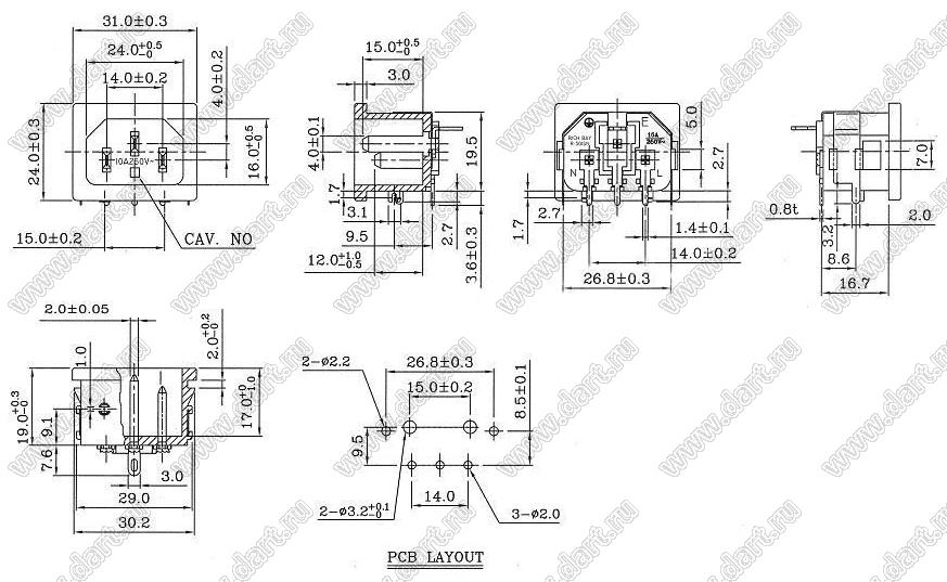 Каталог > Электронные компоненты, радиодетали > Разъёмы (соединители, переходники) > Разъемы AC (разъемы сетевого питания) > Трехполюсные разъемы сетевого питания > IEC 60320 C13/C14 > R-301SN(B216)