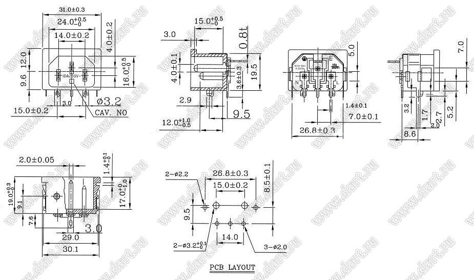 Каталог > Электронные компоненты, радиодетали > Разъёмы (соединители, переходники) > Разъемы AC (разъемы сетевого питания) > Трехполюсные разъемы сетевого питания > IEC 60320 C13/C14 > R-301SN(B206)