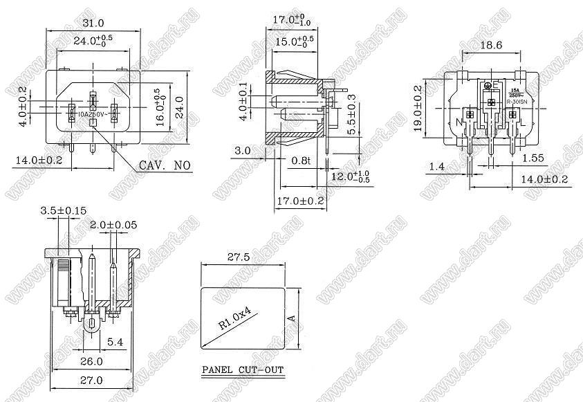 Каталог > Электронные компоненты, радиодетали > Разъёмы (соединители, переходники) > Разъемы AC (разъемы сетевого питания) > Трехполюсные разъемы сетевого питания > IEC 60320 C13/C14 > R-301SN(12)B