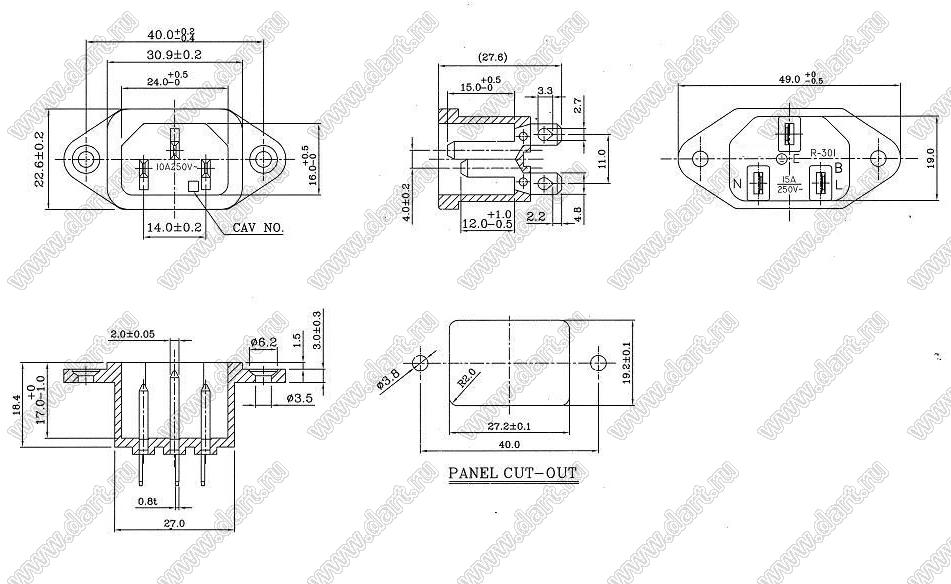 Каталог > Электронные компоненты, радиодетали > Разъёмы (соединители, переходники) > Разъемы AC (разъемы сетевого питания) > Трехполюсные разъемы сетевого питания > IEC 60320 C13/C14 > R-301(B00)