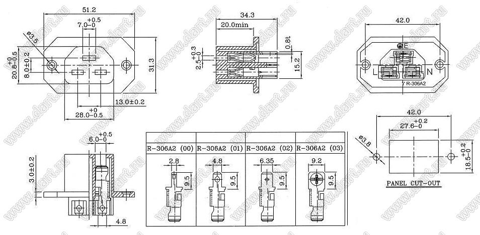 Каталог > Электронные компоненты, радиодетали > Разъёмы (соединители, переходники) > Разъемы AC (разъемы сетевого питания) > Трехполюсные разъемы сетевого питания > IEC 60320 C19/C20 > R-306A2(00)