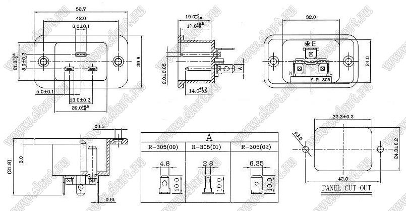 Каталог > Электронные компоненты, радиодетали > Разъёмы (соединители, переходники) > Разъемы AC (разъемы сетевого питания) > Трехполюсные разъемы сетевого питания > IEC 60320 C19/C20 > R-305(00)