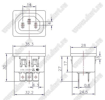 Каталог > Электронные компоненты, радиодетали > Разъёмы (соединители, переходники) > Разъемы AC (разъемы сетевого питания) > Двухполюсные разъемы сетевого питания > IEC 60320 C17/C18 > ZE-3B-4