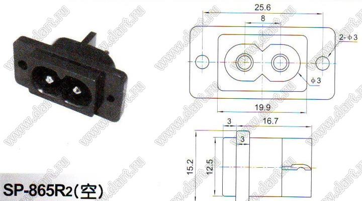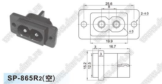 Каталог > Электронные компоненты, радиодетали > Разъёмы (соединители, переходники) > Разъемы AC (разъемы сетевого питания) > Двухполюсные разъемы сетевого питания > IEC 60320 C7/C8 > SP-865R2