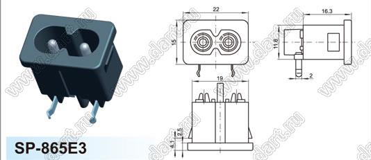 Каталог > Электронные компоненты, радиодетали > Разъёмы (соединители, переходники) > Разъемы AC (разъемы сетевого питания) > Двухполюсные разъемы сетевого питания > IEC 60320 C7/C8 > SP-865E4 (AC-005B)
