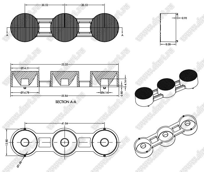 Каталог > Оптоэлектроника и индикация > Линзы и рефлекторы для светодиодов > Прочее > ILENS2-S15-1065-3H1-NH