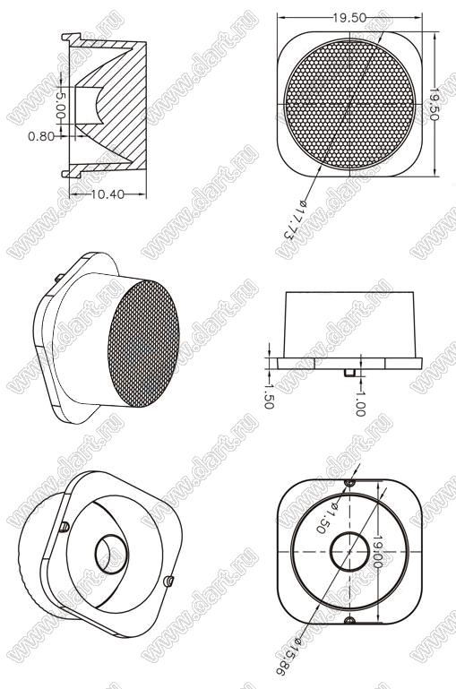 линза для светодиода; 19,5*19,5*10,4мм; 15°; PMMA