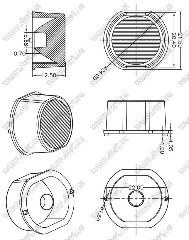 Каталог > Оптоэлектроника и индикация > Линзы и рефлекторы для светодиодов > Прочее > ILENS15-S24-1030-NH