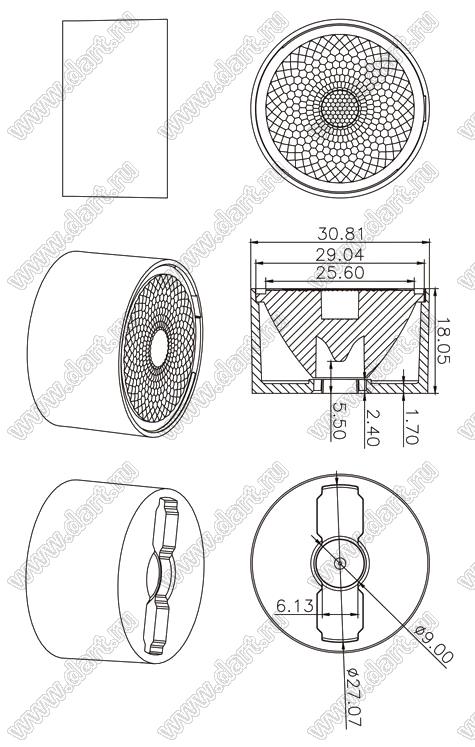 линза для светодиода; D30,81*18,05мм; 10°; PMMA