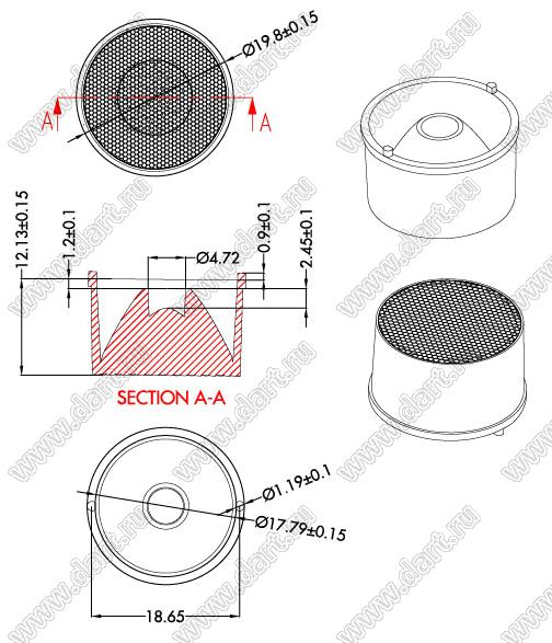 линза для светодиода; D19,8*12,13мм; 20°; PC