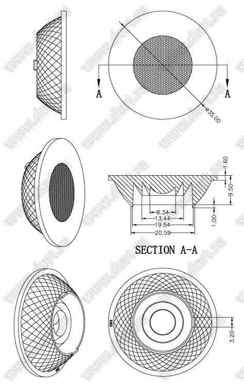 линза для светодиода; D35*10,5мм; 36°; PMMA