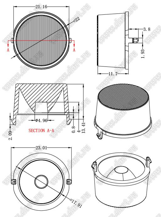 линза для светодиода; D22*15,5мм; 20*40°; PC
