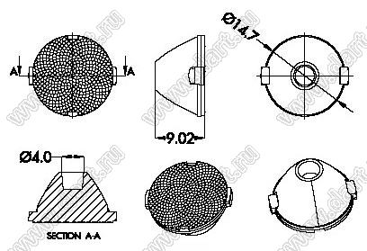 линза для светодиода; D14,7*9,02/10,0мм; 15°; PMMA