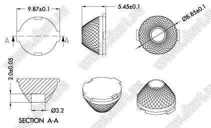линза для светодиода; D8,85*5,45/D10,02*6,5мм; 20°; PMMA