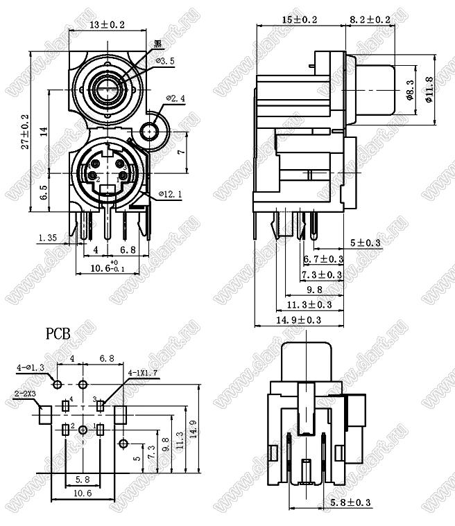 Каталог > Электронные компоненты, радиодетали > Разъёмы (соединители, переходники) > Разъемы DIN (мини) > Блоки гнезд RCA и мини-DIN > AV-MDC-409