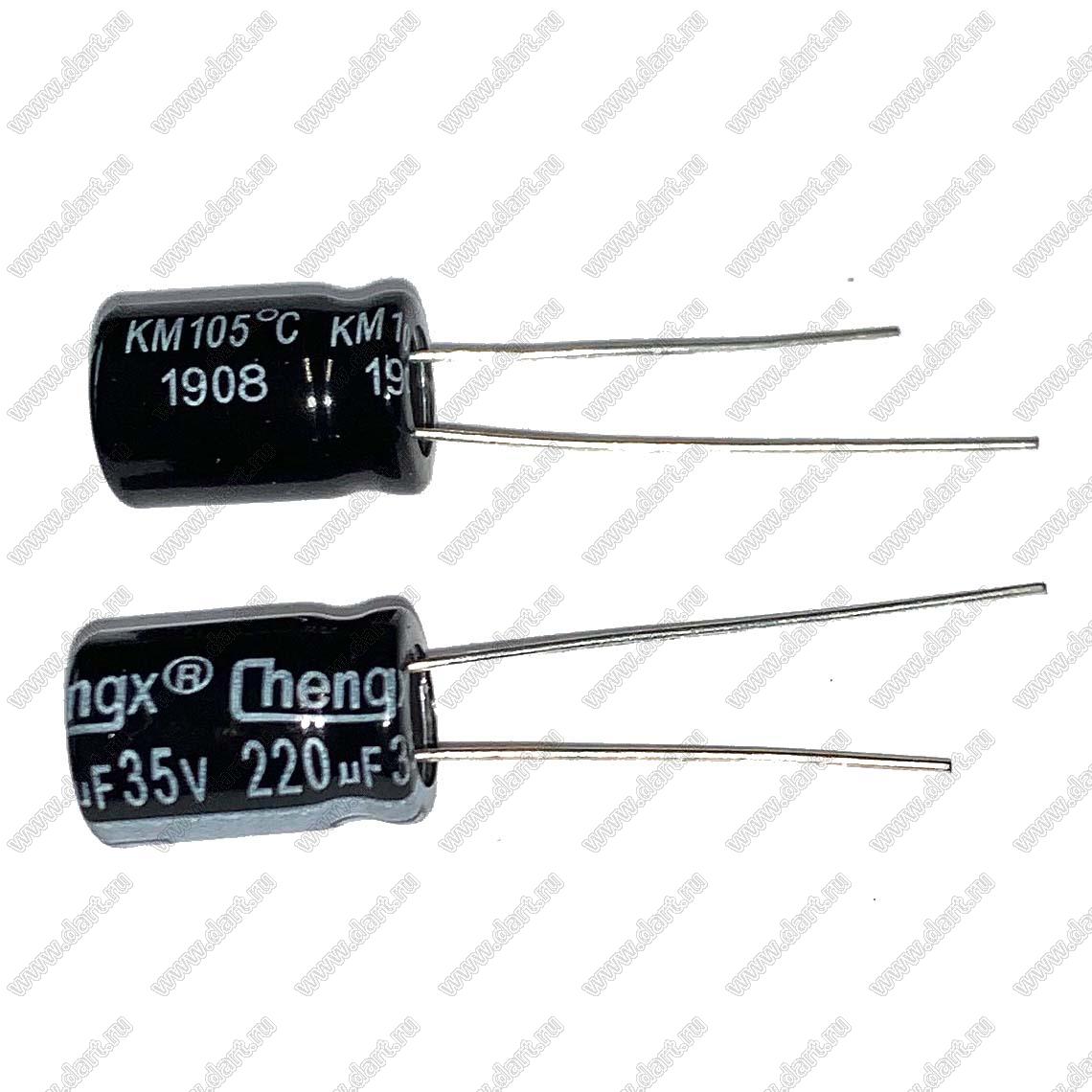 Каталог > Электронные компоненты, радиодетали > Конденсаторы > ECAP - конденсаторы алюминиевые электролитические радиальные > KM (RH) серия > ECAP 220uF/35V 0812 105C (KM227M1VF12)