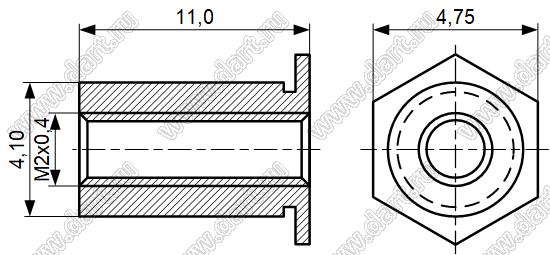Каталог > Фурнитура для электронных устройств > Крепеж металлический (метизы) и пластиковый > Втулки запрессовочные резьбовые сквозные > TSOS-M2-1100