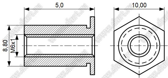 Каталог > Фурнитура для электронных устройств > Крепеж металлический (метизы) и пластиковый > Втулки запрессовочные резьбовые сквозные > TSO-M6-500