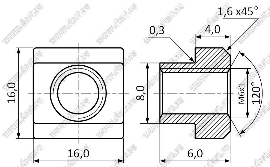 Каталог > Фурнитура для электронных устройств > Крепеж металлический (метизы) и пластиковый > Гайки металлические > Гайки направляющие Т-образные для алюминиевого профиля 2020/3030/4040/4545 по GB/T 158-1996 > TSSGNAP-EU30-M6