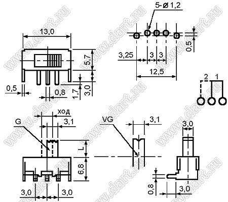 Каталог > Электронные компоненты, радиодетали > Переключатели, кнопки > Переключатели движковые (SLIDE) > Переключатели движковые (SLIDE) угловые > SK-12F23-G9
