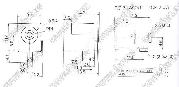 Каталог > Электронные компоненты, радиодетали > Разъёмы (соединители, переходники) > Разъемы вторичного (низковольтного) DC питания > DC гнезда (вторичного низковольтного питания) > DC-005-2.1 (DC-210-2.1 JACK)