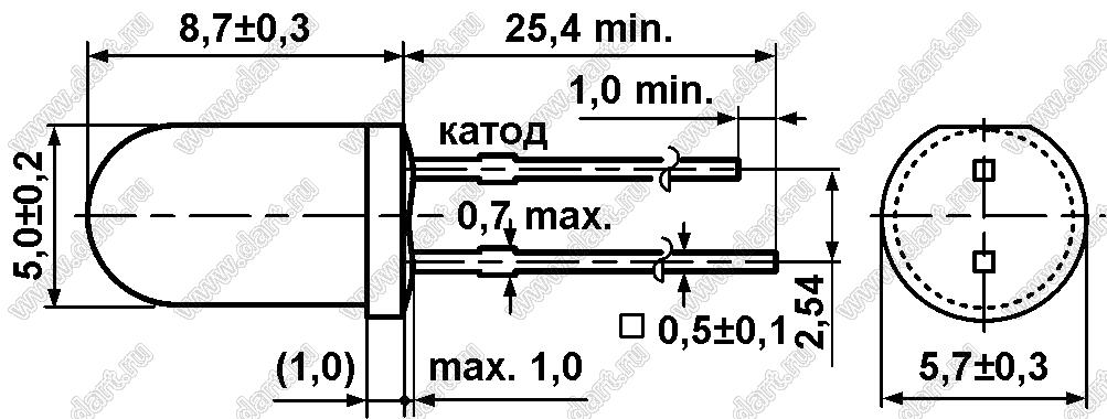 Каталог > Оптоэлектроника и индикация > Светодиоды и изделия на светодиодах > Светодиоды выводные > Светодиоды круглые 5,0x8,7 мм > BL-UE503F3-21 (BIN-3)