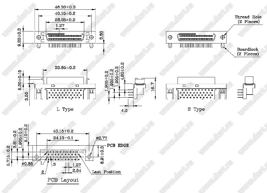 Каталог > Электронные компоненты, радиодетали > Разъёмы (соединители, переходники) > Разъемы SCSI > Розетки SCSI угловые на плату > B02-040611EC-2L