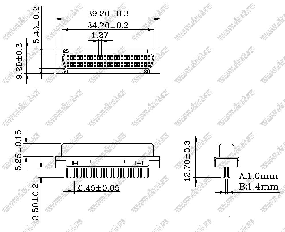 Каталог > Электронные компоненты, радиодетали > Разъёмы (соединители, переходники) > Разъемы SCSI > Розетки SCSI прямые на плату > B02-050F11E0-B1