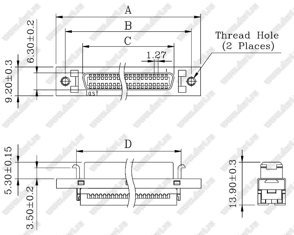 Каталог > Электронные компоненты, радиодетали > Разъёмы (соединители, переходники) > Разъемы SCSI > Розетки SCSI IDC на шлейф > B03-0100211EB-9S